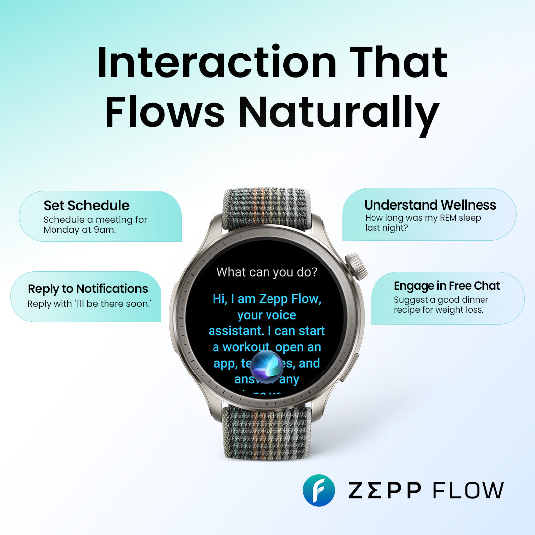 Powered by OpenAI's GPT-4o technology, Zepp Flow™ enables a seamless, seamless connection between you and your smartwatch.¹.