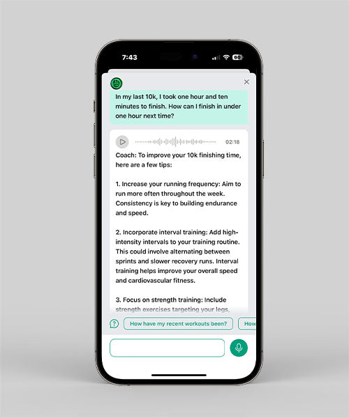 Our AI chatbot, powered by OpenAI technology, offers training tips, nutrition advice, and more. Ask questions in your natural language and get answers that resonate.
