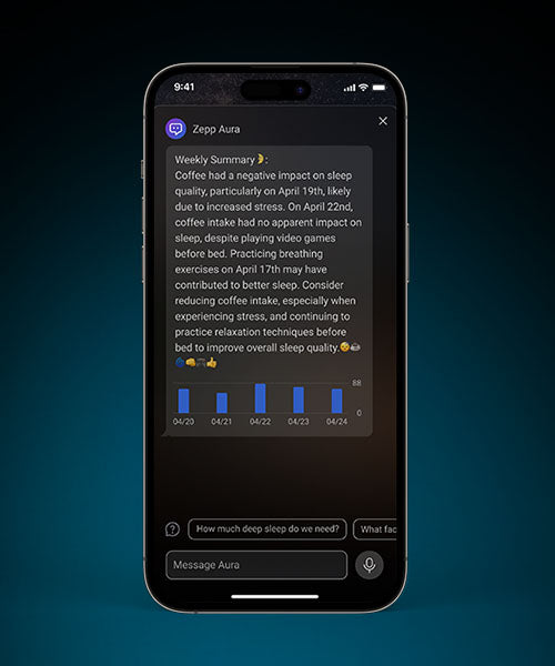Zepp Aura Premium subscribers also have access to Zepp Wellness Coach, which proactively creates daily, weekly, and monthly analyses of your sleep and uses applied large linguistic models (LLMs) to answer your questions.