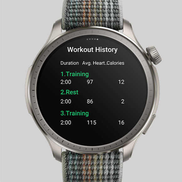 29. The list of 14 sports that are compatible with interval training include: Outdoor running, Treadmill, Outdoor cycling, Indoor Cycling, Indoor fitness, Strength Training, Core training, Pool swimming, Jump rope, Stair Climbing, Rowing machine, Mountain biking, BMX, Race walking. Training templates need to be created on the Zepp App, and up to 40 templates can be stored at a time; interval training can be set directly on the watch.