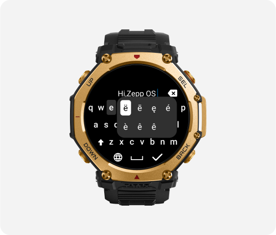 20. Smart recognition of strength training exercises can only be engaged within the Strength Training sports mode. 25 exercises are able to be recognized at time of product release, including: Bodyweight squats, Bodyweight straight arm front squats, Barbell squats, Tricep pushdowns, Bent over rows, Barbell bench press, Sit-up holds, Knee-touch sit-ups, Dumbbell flys, Burpees, Burpee jumps, Overhead tricep extensions, Lying tricep extensions, Lateral raises, Jumping jacks, Lat pulldowns, Deadlift, Push-up, Shoulder press, Pull up, Bicep curls, Seated cable rows, Dumbbell drag curls, Straight-arm pulldowns, Russian twists. If an exercise is not auto-recognized by watch, the Zepp App can provide a list of muscle groups or exercise names to choose from.