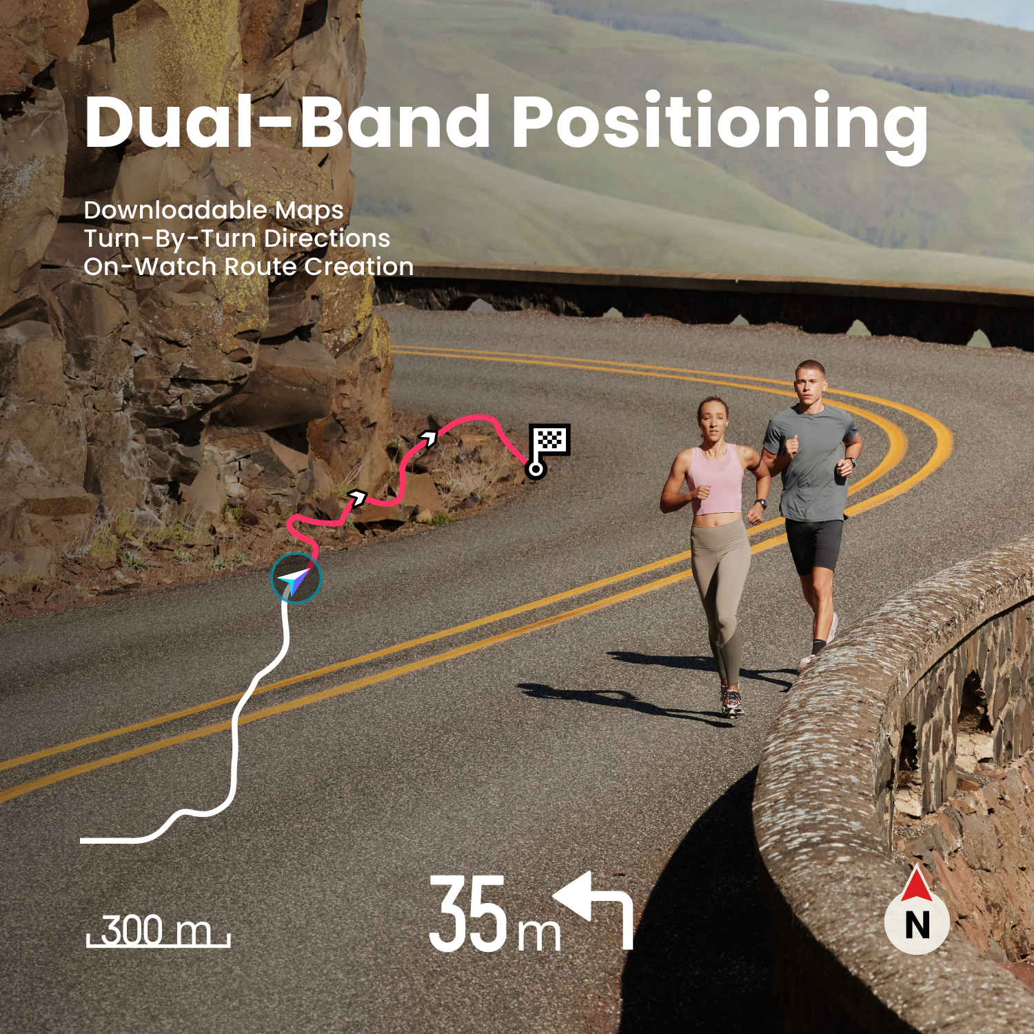 Set a target distance and direction and the watch generates optimized round trip routes, helping you explore new paths while keeping your training distance on track.