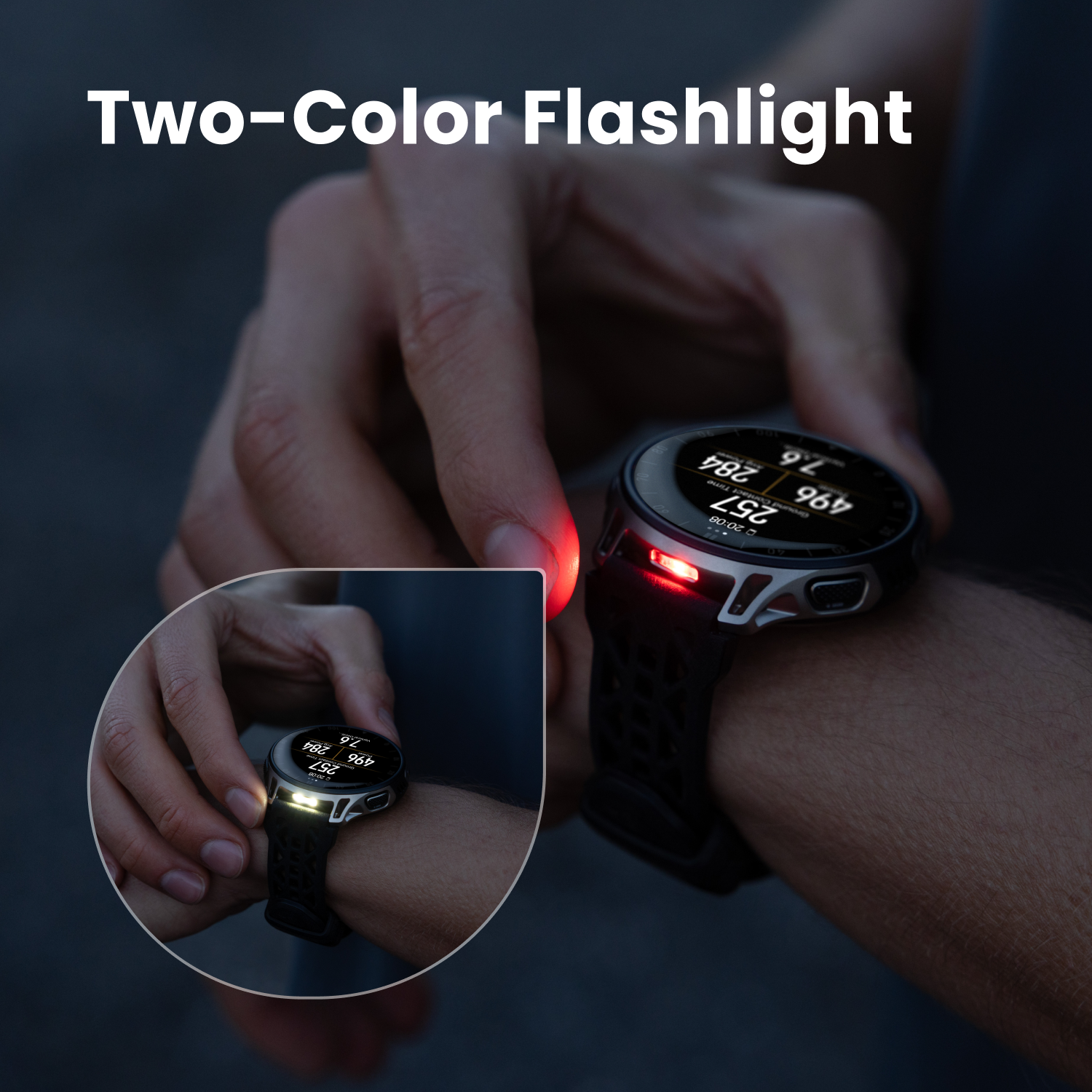 Dual mode LED illumination with white and red-light options improves visibility during early morning and late evening runs, with Boost and SOS modes that add confidence when training in low light conditions.